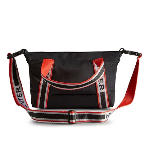 ハンターの耐候性に忠実なナイロンミニトップクリップトートは、耐水性のある表地とリサイクルポリエステルの裏地を使用した抜群の保護力を誇るアイテムです。中身をさらに保護できるようベース部分が強化されており、日常のハンドバッグとして最適なサイズになっています。鍵などの貴重品収納にふさわしい内ポケットや、取り外しと長さ調節が可能なストラップでマルチWAYに使えたりと実用性に長けているのも特徴です。ハンターのトートシリーズの中で最もミニサイズであり、普段使いはもちろんのこと旅行時の貴重品バッグとしてもおすすめです。