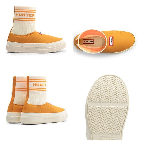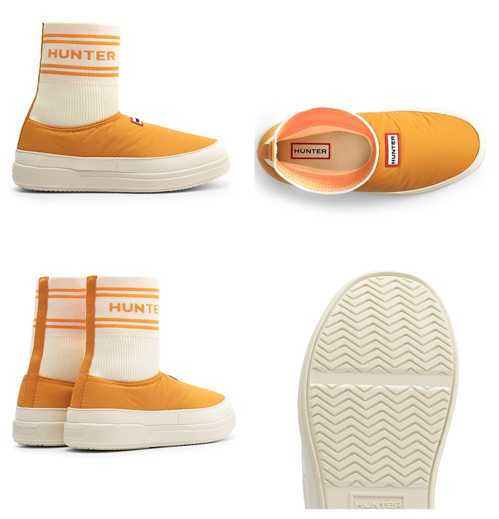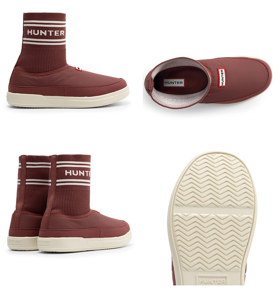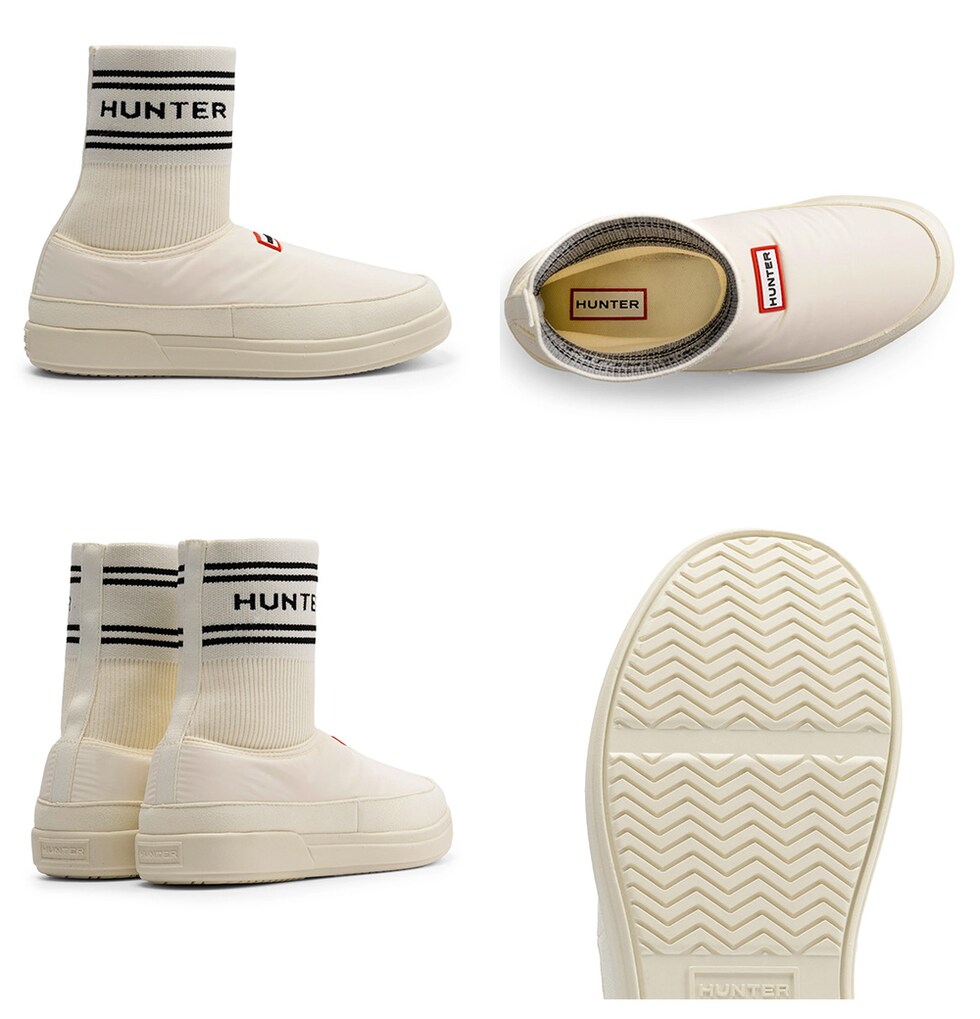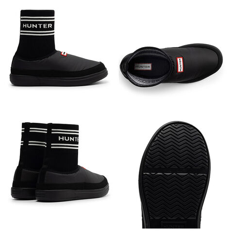 履きやすいブーティスタイルで、靴下の履き口にはハンターのブランドロゴがあしらわれています。