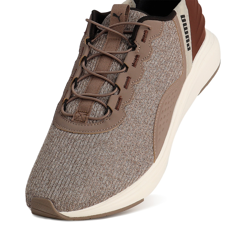 シュータン一体型のスリッポン構造の履き口、かかと部分が柔らかく、立ったまま手を使わず簡単に足入れが可能です。アッパーにメッシュ素材を採用し、軽量で通気性がよく柔らかい履き心地を実現。SOFTRIDEミッドソールは、究極のクッション性を提供し一日中快適な履き心地が持続します。通常よりワイドに設計のため、横幅も気にせず履くことができます。ランニングだけでなく、ウォーキングや外出時にもおすすめの一足です。