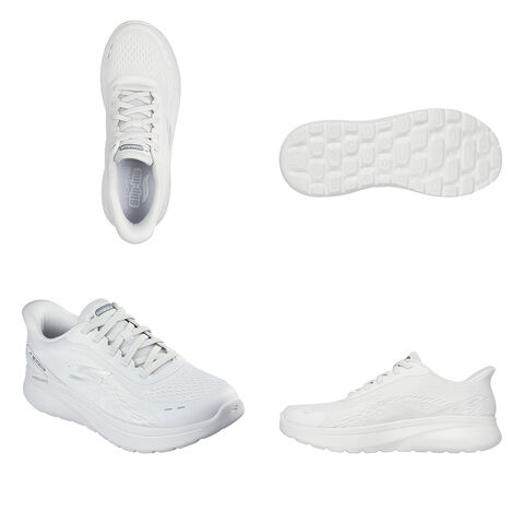 ゆったりとしたエンジニアードメッシュのアッパー、固定式ストレッチレース、取り外し可能なSkechers Arch Fit(スケッチャーズ アーチフィット)インソールが特長です。