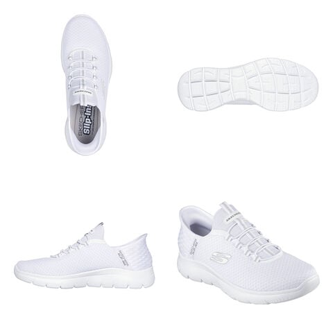スケッチャーズ ハンズフリー スリップインズ:サミッツ - ハイ レンジが、履きやすく快適なステップを実現。限定Heel Pillow(ヒールピロー)で足をしっかりと固定するヴィーガンスタイルのデザイン。独自のポップアップ Skechers Slip-ins(スケッチャーズスリップインズ)モールドヒールパネル、シューレースをあしらったメッシュのアッパー、クッション性のあるSkechers Air Cooled Memory Foam(エアクールドメモリーフォーム)のインソールが特長です。