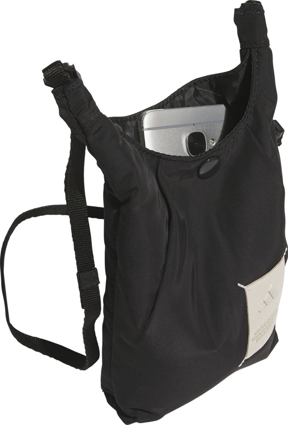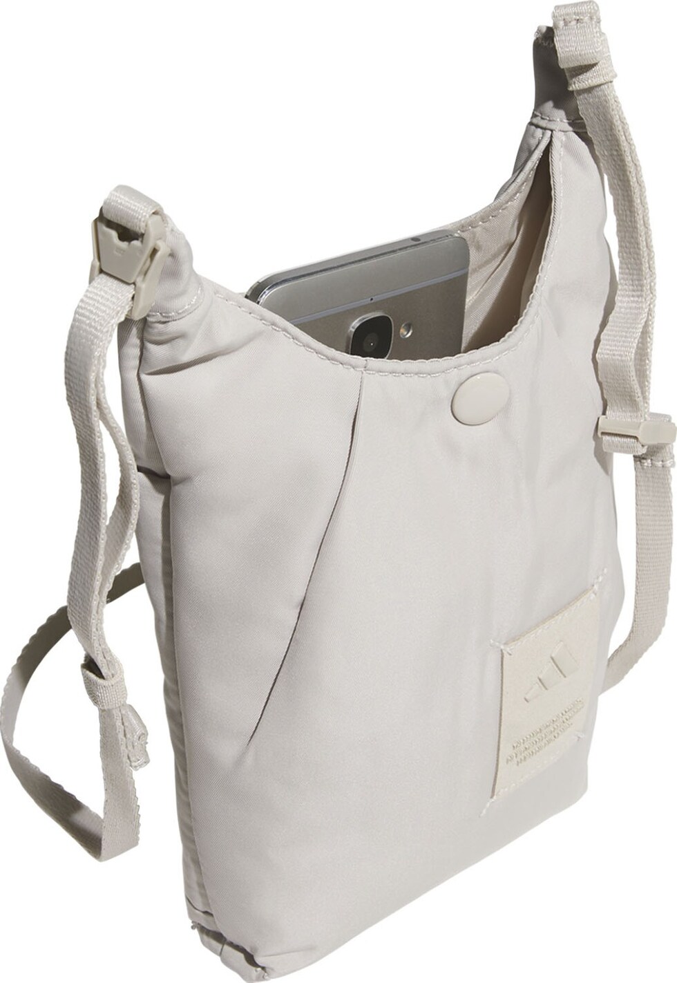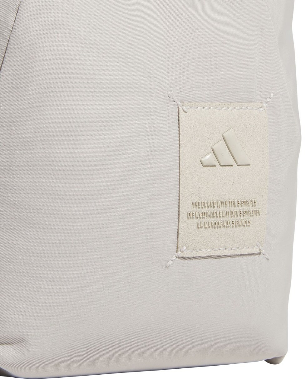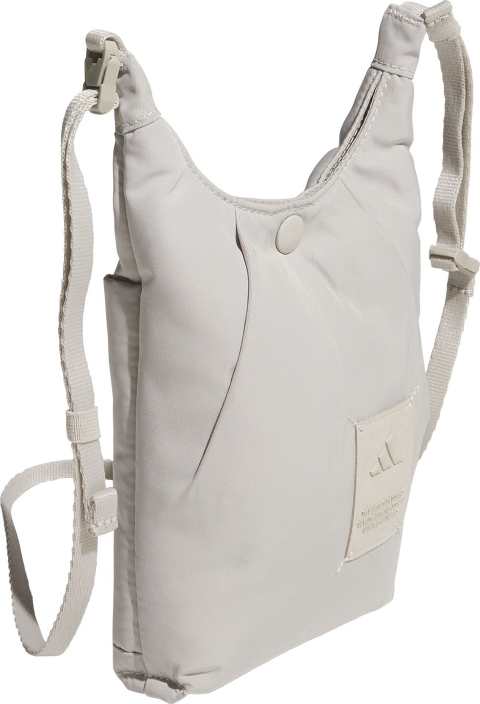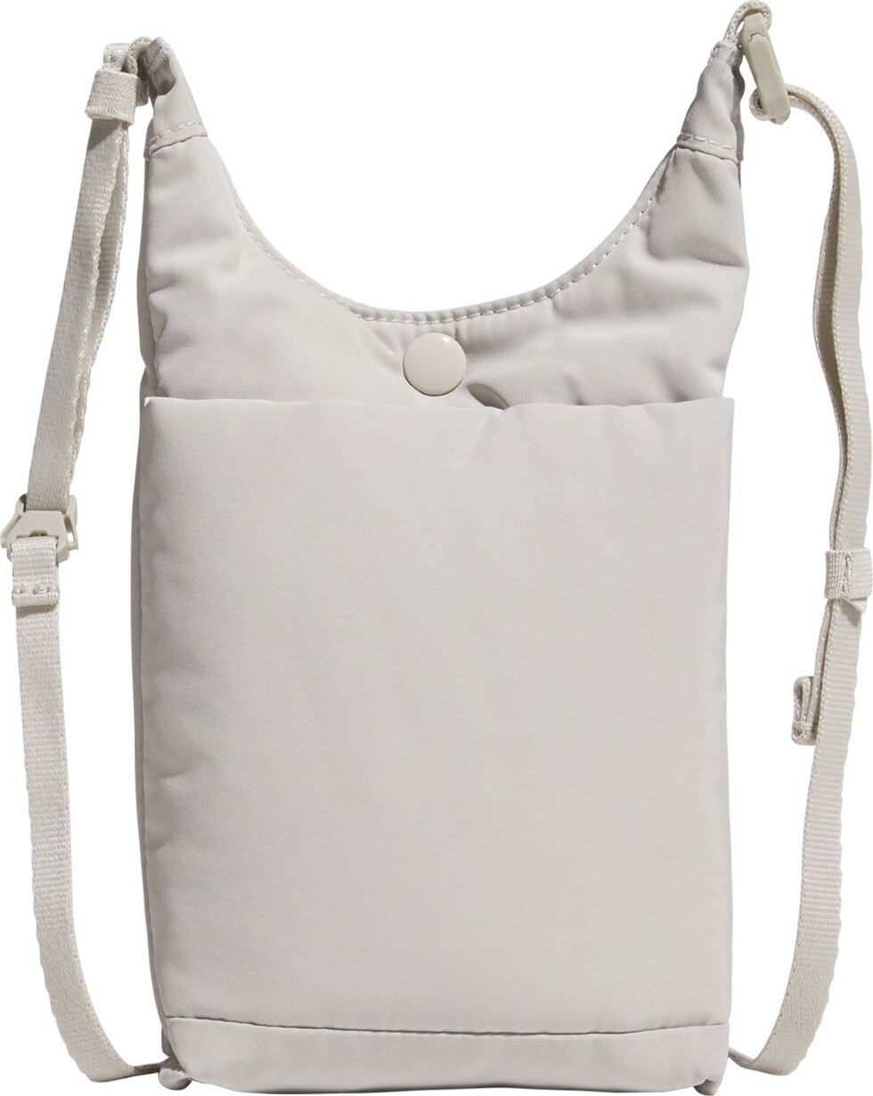 スマートフォン、鍵、カードなど、普段持ち歩く小物だけを入れるのにちょうどいいサイズのミニバッグ。ツイル生地にパッドを入れ、ふっくら柔らかい感じに仕上げている。内側には中身を分類できるスリップインポケット付き。ショルダーストラップは長さを変えたり取り外すこともできる。この製品には、リサイクル素材を50%以上使用している。これまで作られてきた製品の素材をリユースすることは、廃棄物の量、限りある資源への依存、そしてアディダス製品のフットプリントの削減につながっている。
