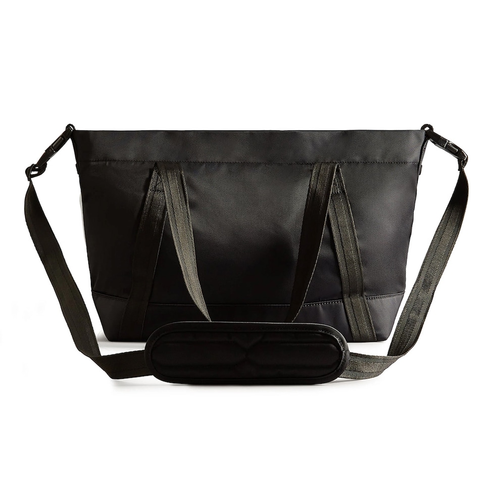 ハンターの耐候性に忠実なナイロンミディアムトップクリップトートは、耐水性のある表地とリサイクルポリエステル製の裏地で仕上げた保護力の高い仕様が魅力的です。中身をさらに保護できるようにベース部分が強化されており、ジムや買い物、一泊旅行に最適なサイズになっています。貴重品などの大切な所持品はジップ式の外ポケットや内ポケットに入れて持ち運べるので、いざという時にスムーズに取り出すことができます。さらに、取り外しと長さ調節ができるストラップや十分な容量と言った抜群の実用性で、さまざまなシーンで活躍してくれるアイテムです。