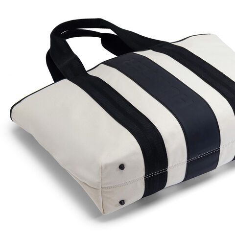 カジュアルでありながらエレガントなデザインのトートバッグは、取り外し・長さ調節可能なストラップ付きで、肩掛けや斜め掛けでもお使いいただけます。