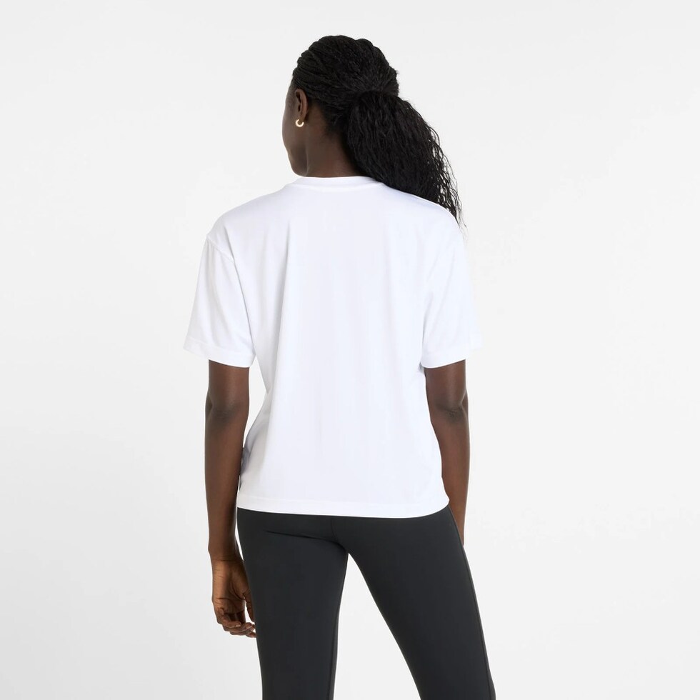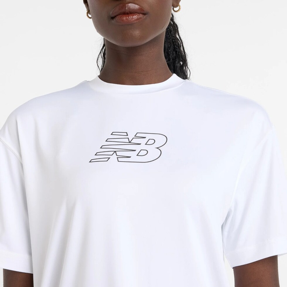 細い糸状のポリエステルスパン素材を使用したショートスリーブTシャツです。やわらかな肌ざわりでドレーピーなリラックスシルエットが、レギンスやパンツとの相性抜群。フロントのフライングNBロゴプリントと、左裾のピスネームタグがデザインのアクセントに。吸汗速乾性に優れたNB Dryがカラダをドライにキープする、ソフトなシルエットの一着です。
