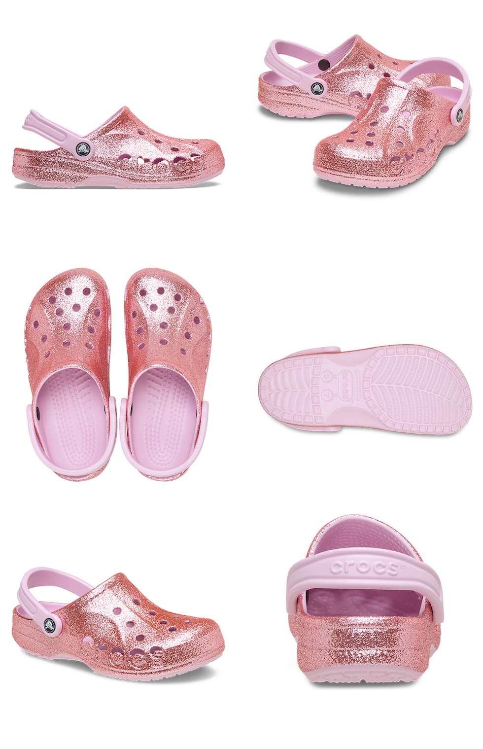 軽くて丈夫、そして高い通気性を備えた、クロックスならではの快適さを楽しめる バヤ グリッター クロッグ。