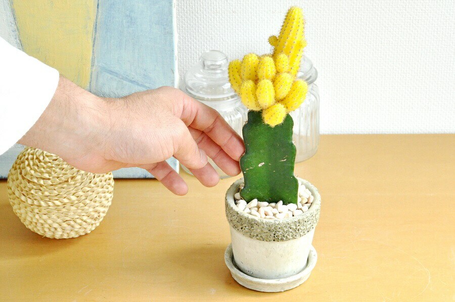 【選べる】サボテン(黄:ヤマブキor赤:ヒボタン) 石模様のセメントポット Sサイズ 陶器鉢 黄色いサボテン ミニサボテン 電磁波サボテン 多肉植物 接ぎサボテン 緋牡丹 山吹 観葉植物 カクタス ヒボタン 接ぎ木 接木 カクタス C4カクタス