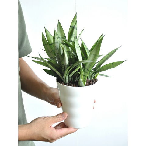 サンスベリア(シルバープリンセス) 4号 白色 プラスチック鉢(受皿付き) 多肉植物・千歳蘭・トウダイグサ・チトセラン・Sansevieria trifasciata サンセベリア・苗・苗木・敬老の日・ポイント消化・観葉植物