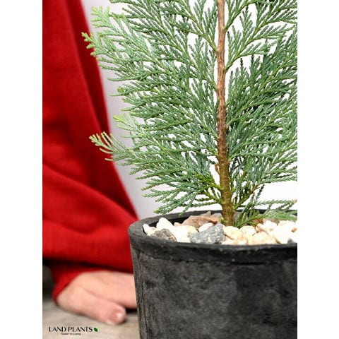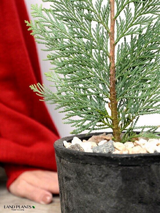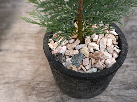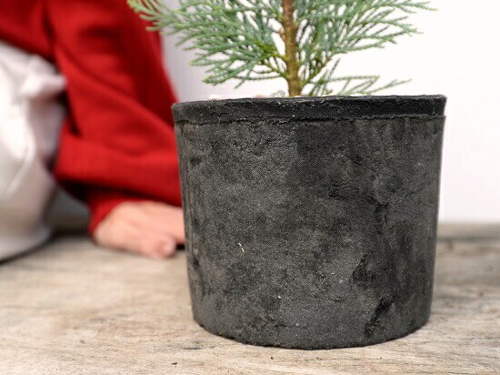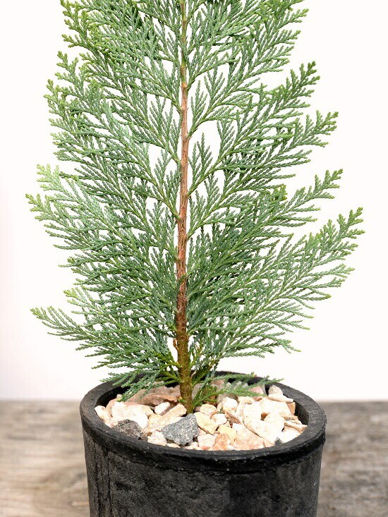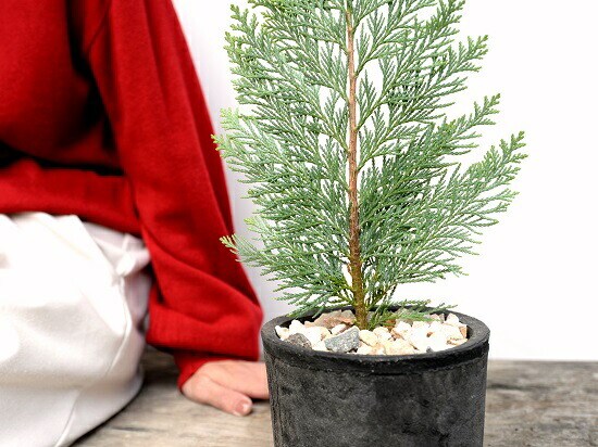 コニファー(アルミゴールド) 黒色 モスポット シリンダー型 陶器鉢(天然砕石) ヒノキ クリスマスツリー クリスマス コニファ 針葉樹 鉢植え 鉢 素焼 テラコッタ 黒 ブラック 丸 丸形 観葉植物 植物 送料無料