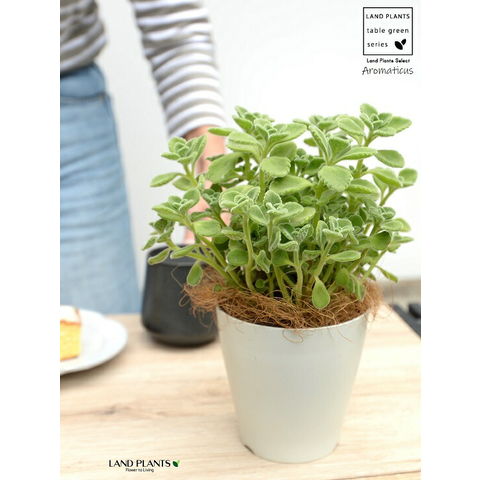 葉は表面に細かく柔らかい小さな毛で覆われていて、肉厚でぷにぷにしています。とても香りがあり人気のハーブの一種です。