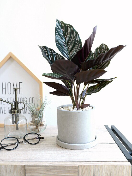 カラテア(サンデリアーナ) セメント シリンダー型 陶器鉢 鉢植え 鉢 苗 苗木 観葉植物 送料無料 灰色 灰 グレー ねずみ 丸 ラウンド サンデリアナ