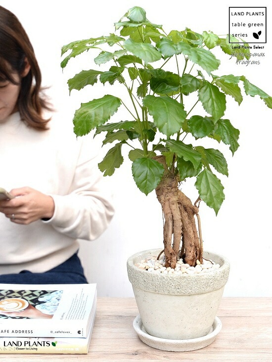 鉢は簡単に持ち運びできる卓上サイズなので移動にも便利。植物はしっかりボリュームを感じられるのでお部屋の主役になります。
