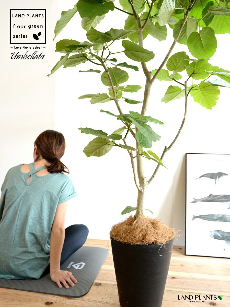 ウンベラータ(自然樹形) 10号 セラアート鉢 黒色 【ココファイバー・プラ皿】 鉢 鉢植え 植木鉢 プラ鉢 プラスチック ゴムノキ ゴムの木 ゴム ウンダベータ ウランベータ 黒 ブラック 丸 丸型 ラウンド 大型 尺 尺鉢