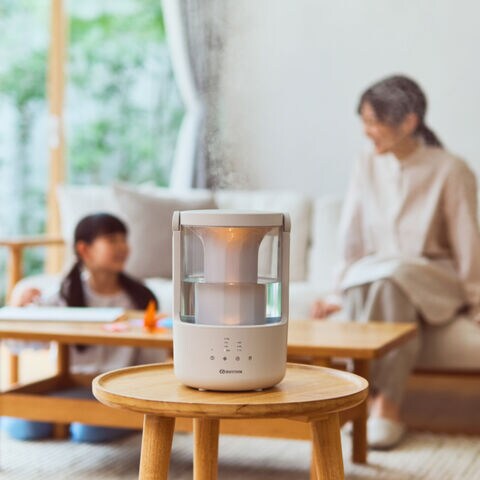 乾燥や多湿はウイルスやカビの温床に。「MIST 250」なら、搭載された湿度センサーが室内を計測し人が健やかに過ごせる湿度約40~60%設定で運転します。