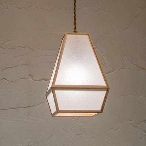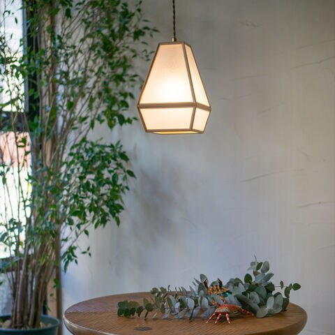 ダイアモンド型のシェード上に立ち上がった「木組み」が特徴のペンダント。