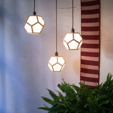 小ぶりで個性豊かなシェードをシャンデリア、ペンダント、シーリング、ブラケット、スタンドの各灯具に自由に組み合わせて使えるカスタマイズシリーズ。