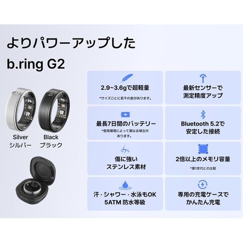 ・b.ring ブリング AIスマートリング 7サイズ G2 第二世代 B075SBK2 ブラック