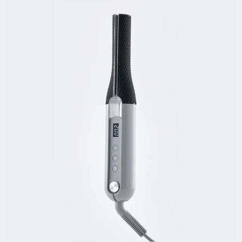 コンパクトで軽い本体は使用時の手の負担を軽減します。一方、最大限まで大きくしたプレート部は、先端を薄くすることで一度に施術できる面を広範にしつつ頭皮や生え際近くまで繊細に挟めます。美容師の皆さんの声を元に採用したハニカム処理のフェルトによって、熱さを感じづらく汚れが付きにくい工夫も施しました。
