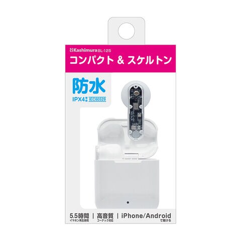 カシムラ 完全ワイヤレスイヤホン 防水 Bluetooth BL-125 ホワイト WHS【送料無料】