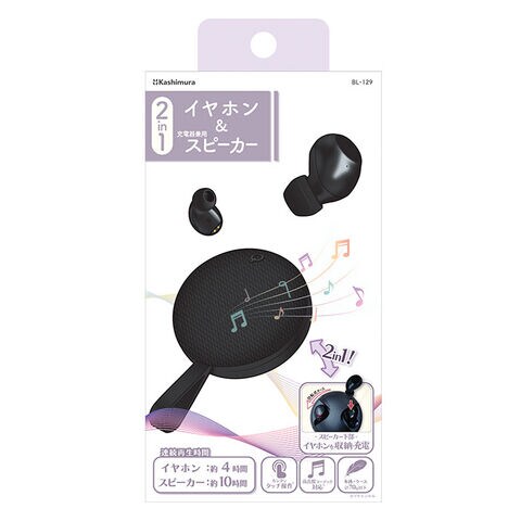 カシムラ 2in1 完全ワイヤレス ステレオイヤホン & スピーカー BK BL-129【送料無料】