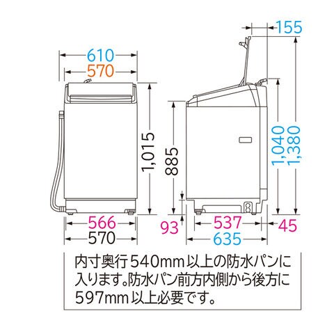 ■標準洗濯容量/標準脱水容量: 8.0 kg(乾燥状態での布質量)
