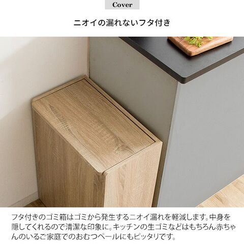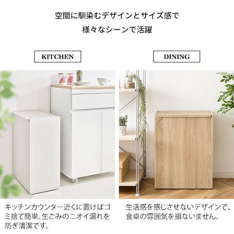 ■ゴミ箱だと分かりにくいスタイリッシュなデザインでキッチンに馴染みます。たっぷり入る45Lで、匂いが漏れにくい蓋や移動もできる隠しキャスター付きで利便性も抜群。