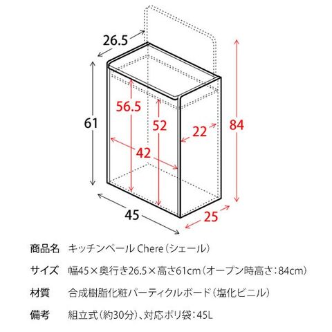 ■備考組立式(約30分)、対応ポリ袋:45L