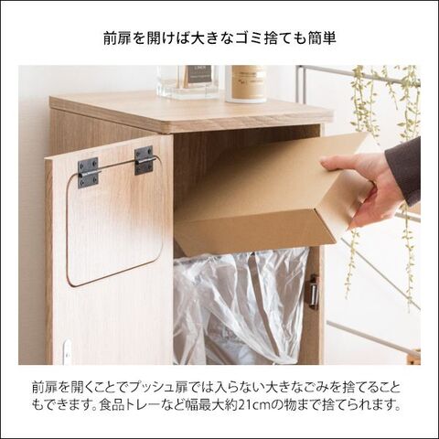 ■それぞれ容量20Lでキッチンやリビングや寝室など色々なゴミが出る場所でも簡単に分別できます。ニオイが漏れにくく押すだけで簡単に捨てられるプッシュ扉式。ゴミ袋の着脱も簡単な前扉があり、利便性もバツグンです。