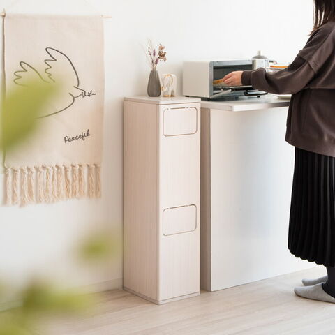 ■ゴミ箱に見えないスタイリッシュなデザインでお部屋に馴染む、木製プッシュ式ダストボックス『Empro(エンプロー)』の二段タイプ。スリムで場所を取らないので家具や家電のすき間に置けます。