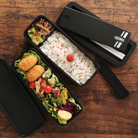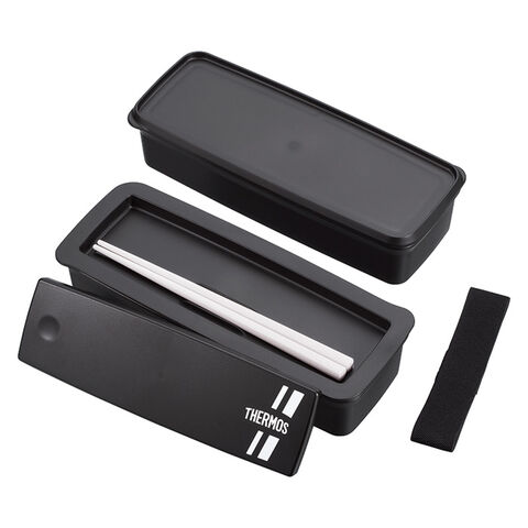 ■大人も子供も使いやすい!ハシ付きのお弁当箱 汁もれしにくいシンプルデザインのお弁当箱。フタの端を押すと簡単にフタが開いてハシが取り出せます。2段式です。食洗器対応。
