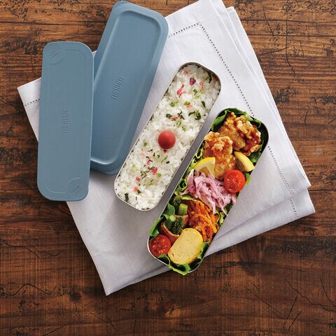 ■スリムな2段式のお弁当箱 ステンレス製のランチボックス。パッキン付き。バッグにも入れやすいスリムサイズで、シンプルな専用保冷ケースが付いています。食洗器対応