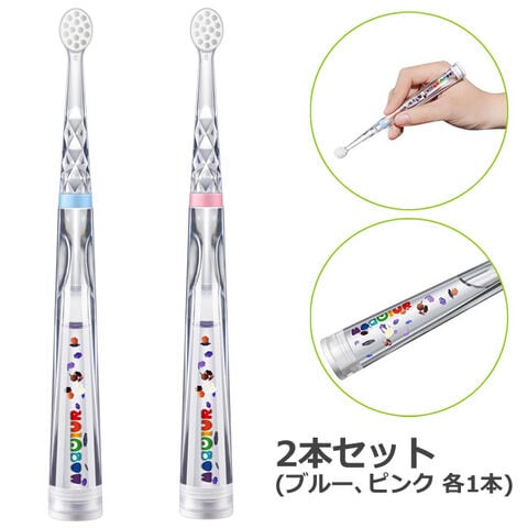 持ち手部分は虹色のラメがフローティングするユニークなデザイン。ウサギ型のラメを探して、歯磨きのやる気もUPします!
