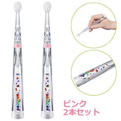 持ち手部分は虹色のラメがフローティングするユニークなデザイン。ウサギ型のラメを探して、歯磨きのやる気もUPします!