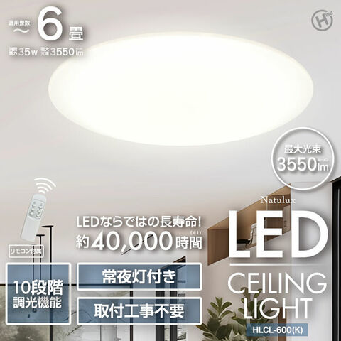 Natulux 6畳用 LEDシーリングライト HLCL-600 ホワイト ヒロ・コーポレーション【送料無料】