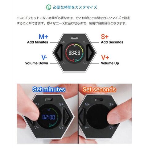 ●【カウントダウン】このポモドーロタイマーは日常の時間管理に最もよく使われる6つの時間の数字を正六角柱の横の表面に分布させ、ボタンを押さず、横に倒すだけで上に向いている数字で時間がカウントダウンが始まるという斬新なデザインです。最大99分59秒カウントダウン機能付き自閉症やADHDの子どもたちに非常に役に立ちます。