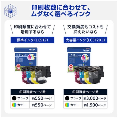 ●対応インクカートリッジ:LC512シリーズ(標準)、LC512XLシリーズ(大容量)
