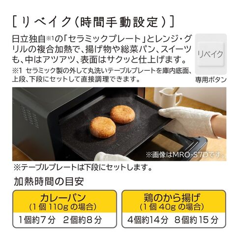 日立独自(※)の「セラミックプレート」とレンジ・グリルの複合加熱で、揚げ物や総菜パン、スイーツも、中はアツアツ、表面はサクッと仕上げます。