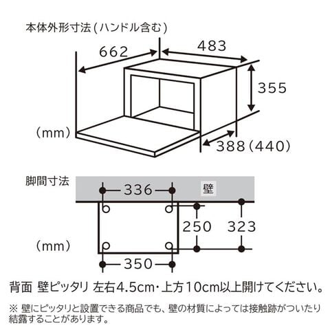 ・レンジ:手動出力:1,000W、600W、500W、200W相当、100W相当/消費電力(最高):1,450W