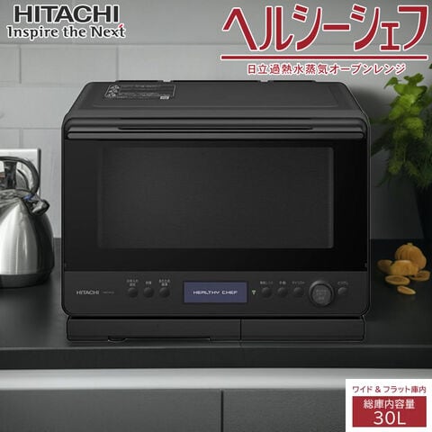 日立 30L 過熱水蒸気オーブンレンジ ヘルシーシェフ MRO-W1D-K フロストブラック【送料無料】