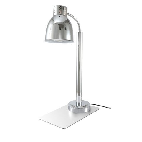 クロームメッキの存在感のあるヒートランプ。マグネットプラグ給電仕様なので、万が一足などを引掛けても本体側のマグネットプラグが抜ける為、施設も利用者双方にとって安全面のメリットがあります。操作も簡単で横倒しになった場合は自動消灯もします。また卓上も広く使えるベールプレートとなっていて使い勝手もとても良いヒートランプです。