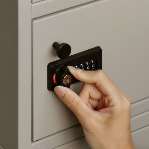 ■セキュリティ:最上段は、プッシュキーで、簡単に鍵の開閉が可能で防犯面に安心です。また、スペアキーが1本付属しております。