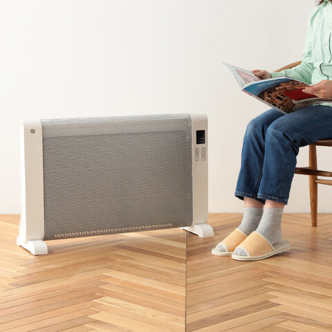 マイカ(雲母)を使用し、効率よく放熱を行い輻射熱と放射熱で室内をじんわりと暖めることができる遠赤外線パネルヒーターです。 セラミックヒーターやエアコンのように風を巻き起こすことが無いためホコリが舞ったり空気が乾燥することがありません。