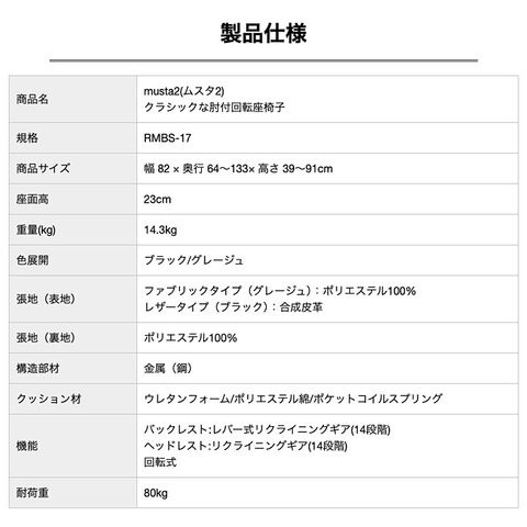 ■商品名:musta2(ムスタ2) / クラシックな肘付回転座椅子