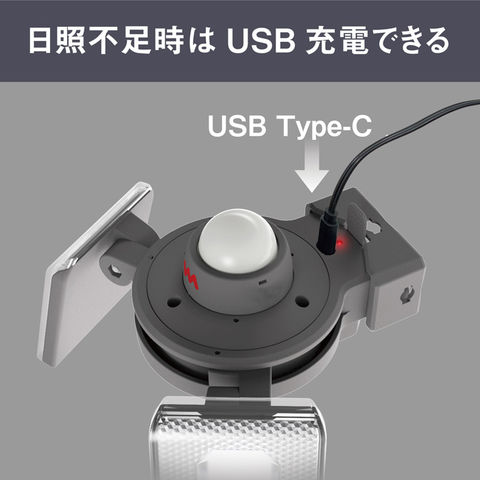 ■日照不足でソーラー発電が不足したときはUSBから充電できます。安定した点灯を維持できるソーラー式センサーライトです。