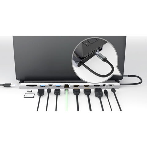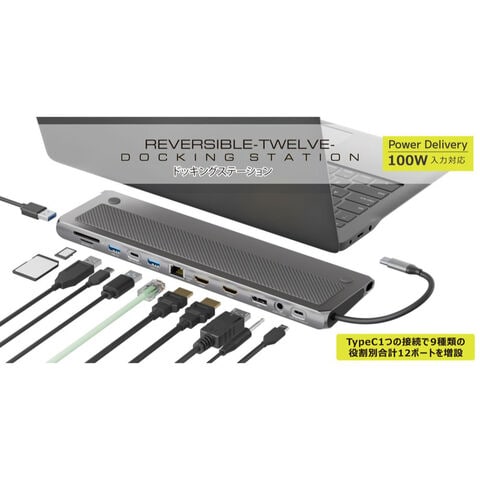 ●映像出力を増やしたり、USBハブ、SDカード、LANなどパソコンとTypeCポート1本の接続であれもこれも12ポート増設!
