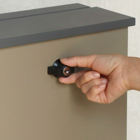 ■ひねりロック:鍵部はひねりロックタイプを使用しており、ひねりレバーの操作で、鍵の開閉を行わずとも扉を閉めておくことが可能です。
