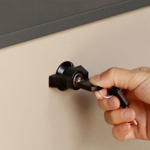 ■ひねりロック:鍵部はひねりロックタイプを使用しており、ひねりレバーの操作で、鍵の開閉を行わずとも扉を閉めておくことが可能です。