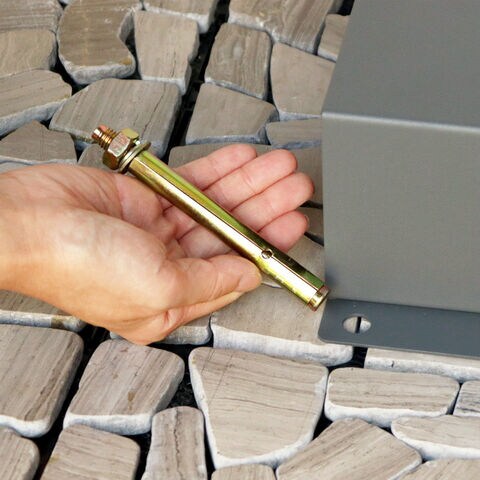 ■地面固定用のアンカーボルトが付属します。土台部にアンカーボルトを打ち込む穴があり、地面とポストを固定することも可能です。