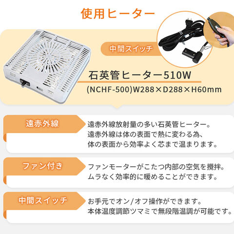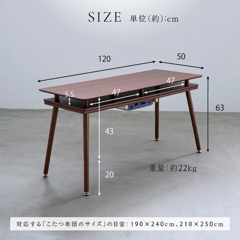 ■一般的な長方形120cmサイズのこたつ布団が使用できる。