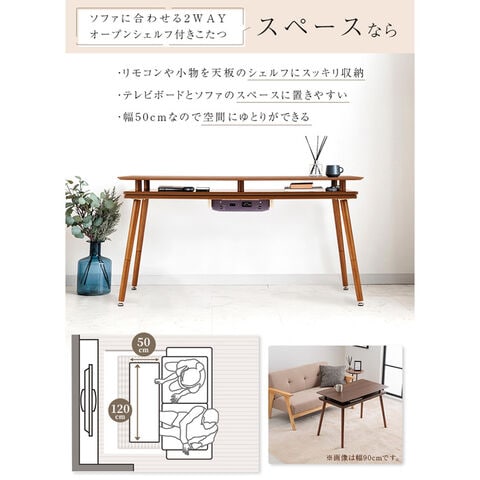 ユアサプライムス ソファに合わせるシェルフ付き2WAYこたつ スペース120G SPACE-120G-BR ブラウン【送料無料】